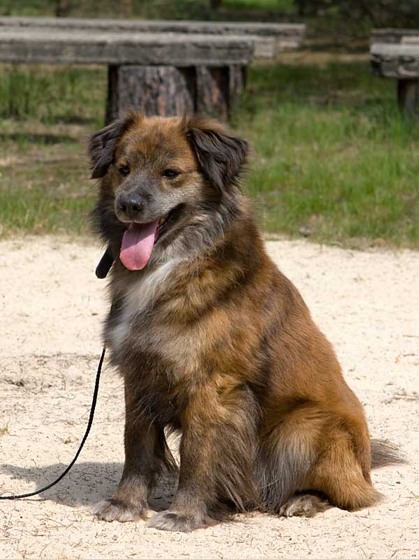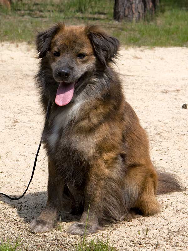 Banjo ist ein kleiner flauschiger Mischling von ca. fünf Jahren.