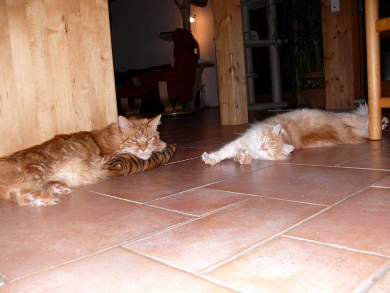 "London (aus der Tötung in Spanien) und Rufus vertragen sich recht gut, vor allem weil der Kleine den Großen voll im Griff hat. Wird Rufus zu aufdringlich gibt’s halt eins auf die Mütze… unter heftigem Gefauche. Rufus lässt sich davon tatsächlich beeindrucken *grins*."