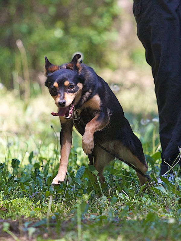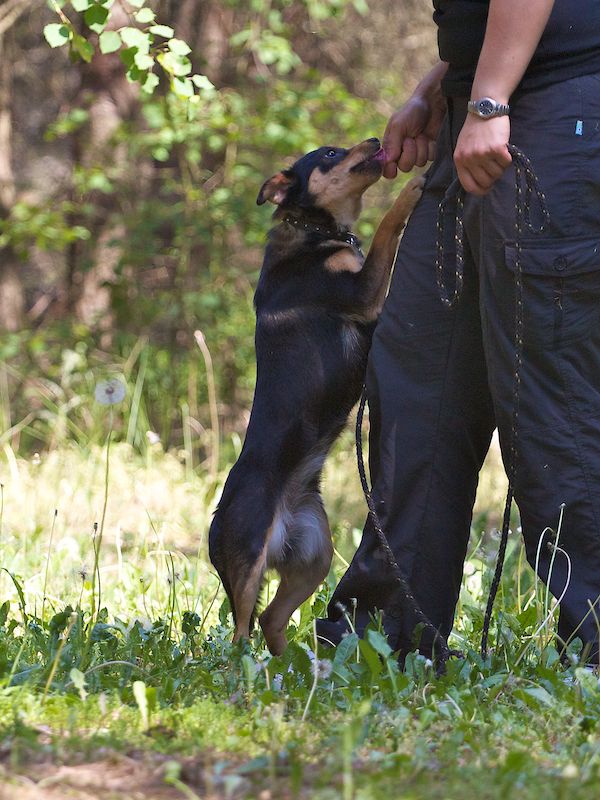 Bambi ist eine sehr zarte Hündin. Allerdings ist sie durchaus in der Lage, sich gut zu behaupten. Sie zeigt sich selbstbewusst und gab bei uns in der Gruppe auch schon mal den Ton an.