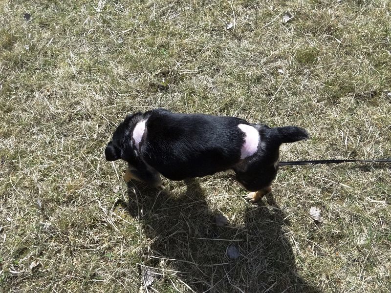 Wir haben mit verschiedenen Cremes und Salben experimentiert. Aber die verträgt sie nicht. Die kahlen Hautstellen werden dann rot entzündlich. Deshalb dürfen auch keine Sonneneinstrahlung oder Frost an die Haut gelangen. Sie muss also sommers wie winters ein Hemdchen oder Mäntelchen tragen, wenn sie draußen ist.