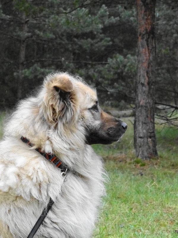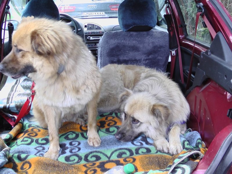 Unser Ehrgeiz hatte uns zuvor veranlasst, beide vor dem vereinbarten Abholtermin noch zu scheren, damit sie mit ihrem dicken Fell im Sommer nicht so viele Probleme haben. Aber gut gemeint ist nicht immer gut gemacht. Kurz nachdem wir die Schere angesetzt hatten, erhielten wir den Hinweis, das seien doch keine Schäferhunde sondern Owtscharkas (kaukasische bzw. zentralasiatische Hütehunde). Diese Rasse ist daran gewöhnt, sommers wie winters in den Bergen allein auf Herden aufzupassen. Dabei dient das lange Fell als Schutz. Im Winter einleuchtend. Aber auch im Sommer ist es notwendig, damit die Sonne - bzw. die UV-Strahlung - nicht die Haut verbrennt. Zum Glück haben wir nicht ganz kurz geschoren und die neuen Besitzer werden nun alles Weitere richten.