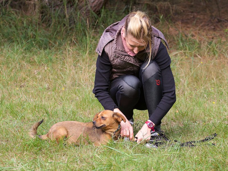 Hazel ist eine freundliche kleine Hundedame, die sofort auf jeden zukommt.