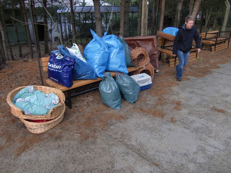 Der Verein TeamSport aus Berlin hatte sich mit einer Spendenlieferung angekündigt. Was dann alles aus dem Auto ausgeladen wurde, war eine riesige Lieferung an Decken, Körbchen, Betten, Transportboxen und anderen schönen Dingen, die die Berliner Tierfreunde bei ihren Vereinsmitgliedern, Freunden und Bekannten für uns gesammelt hatten. Also das war ein wunderschöner Beginn der Adventszeit für uns.
