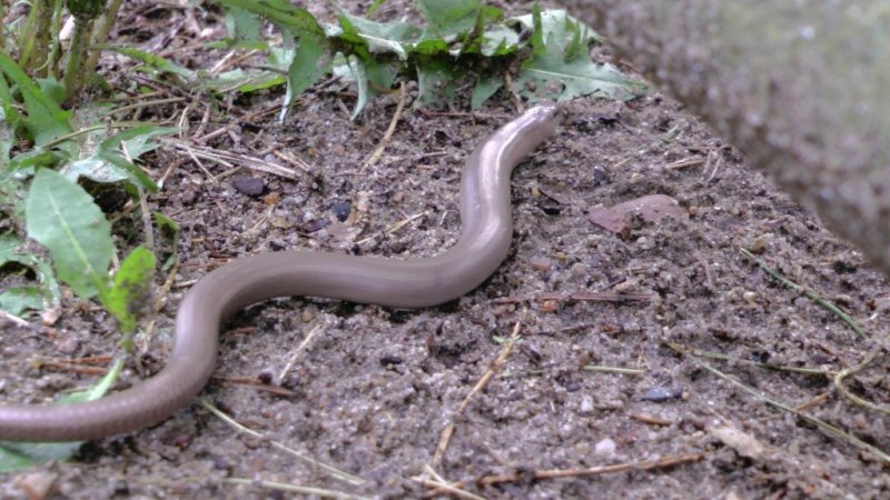 Erfreut können wir mitunter beobachten, dass auch andere Gäste unser Tierheim gern aufsuchen. Direkt neben einem Hundeauslauf entdeckte unser Tierheimleiter diese Blindschleiche und machte schnell ein paar Schnappschüsse.