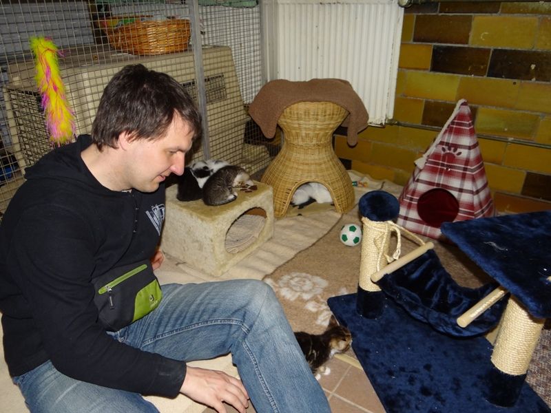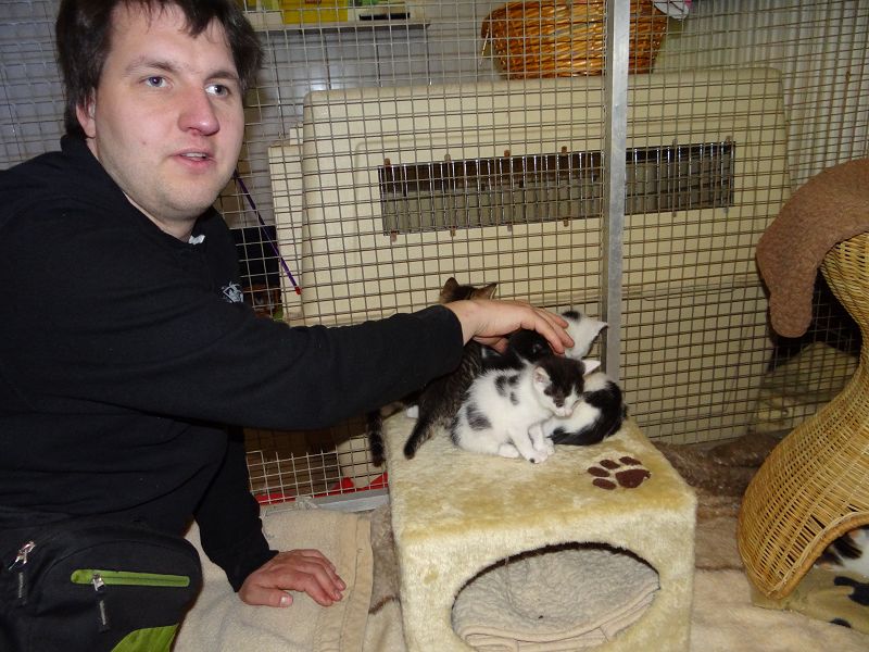 Auch der blinde junge Mann, der eigens aus Erkner angereist war um mitzuhelfen, betreute die Katzen.