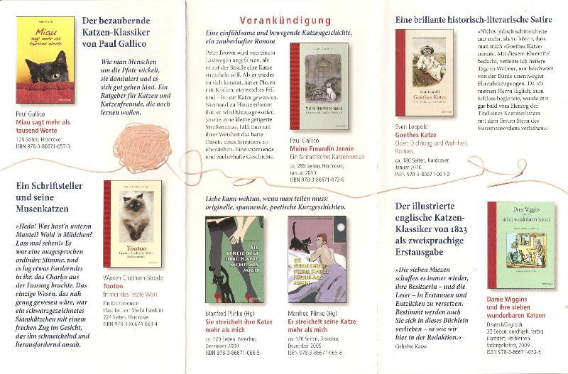 Überhaupt scheint man es in der Edition Tieger gut zu meinen mit Tieren, wie der Blick in einen Verlagsprospekt zeigt.