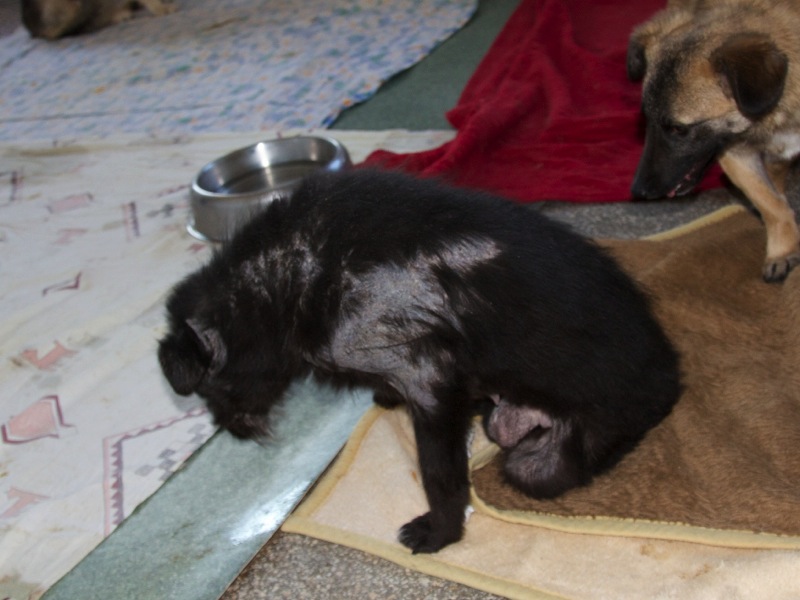 In einem weiteren Raum waren Quarantäne-Boxen - sowohl mit Katzen als auch Hunden (fast ausschließlich Welpen). Leider hatte es ein Welpe nicht geschafft, er hatte den Kampf um sein Leben verloren - wie so viele andere schon zuvor.