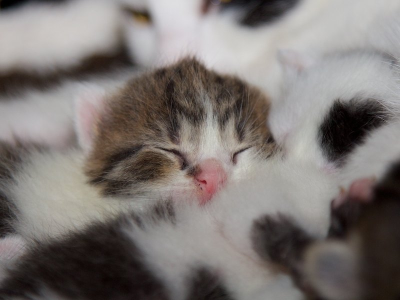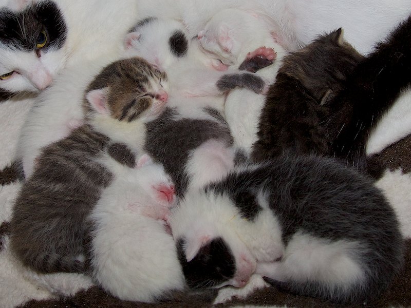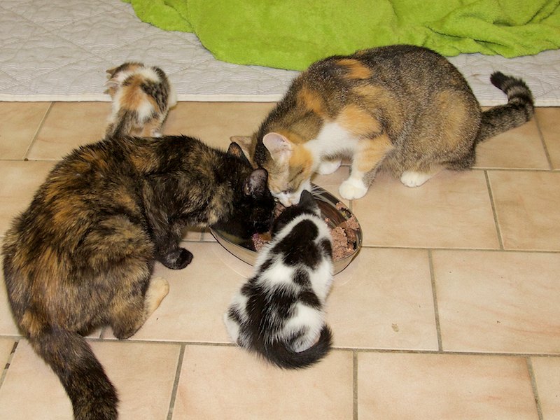 Manche Katze hatte nur ein oder zwei Junge. Aber die Kleinen sind ja nicht dumm und schauen auch immer mal bei anderen Müttern vorbei, ob an der Milchbar noch etwas zu holen ist.