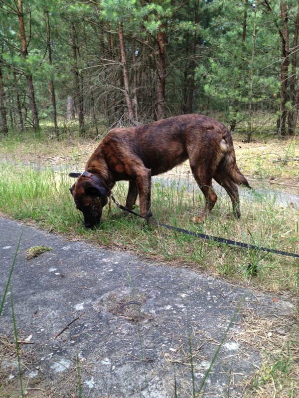Natürlich fällt auch immer mal eine Extra-Einheit für Dwighty ab. Er ist zwar nicht ängstlich und auch ansonsten nicht besonders schwierig, aber als Langzeitinsasse bekommt er bei uns natürlich zusätzliche Zuwendung, die er immer sichtlich genießt.