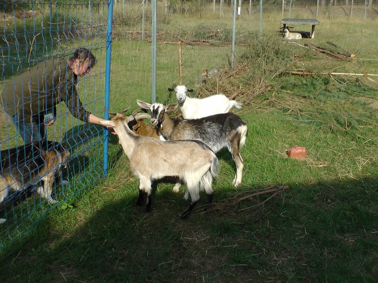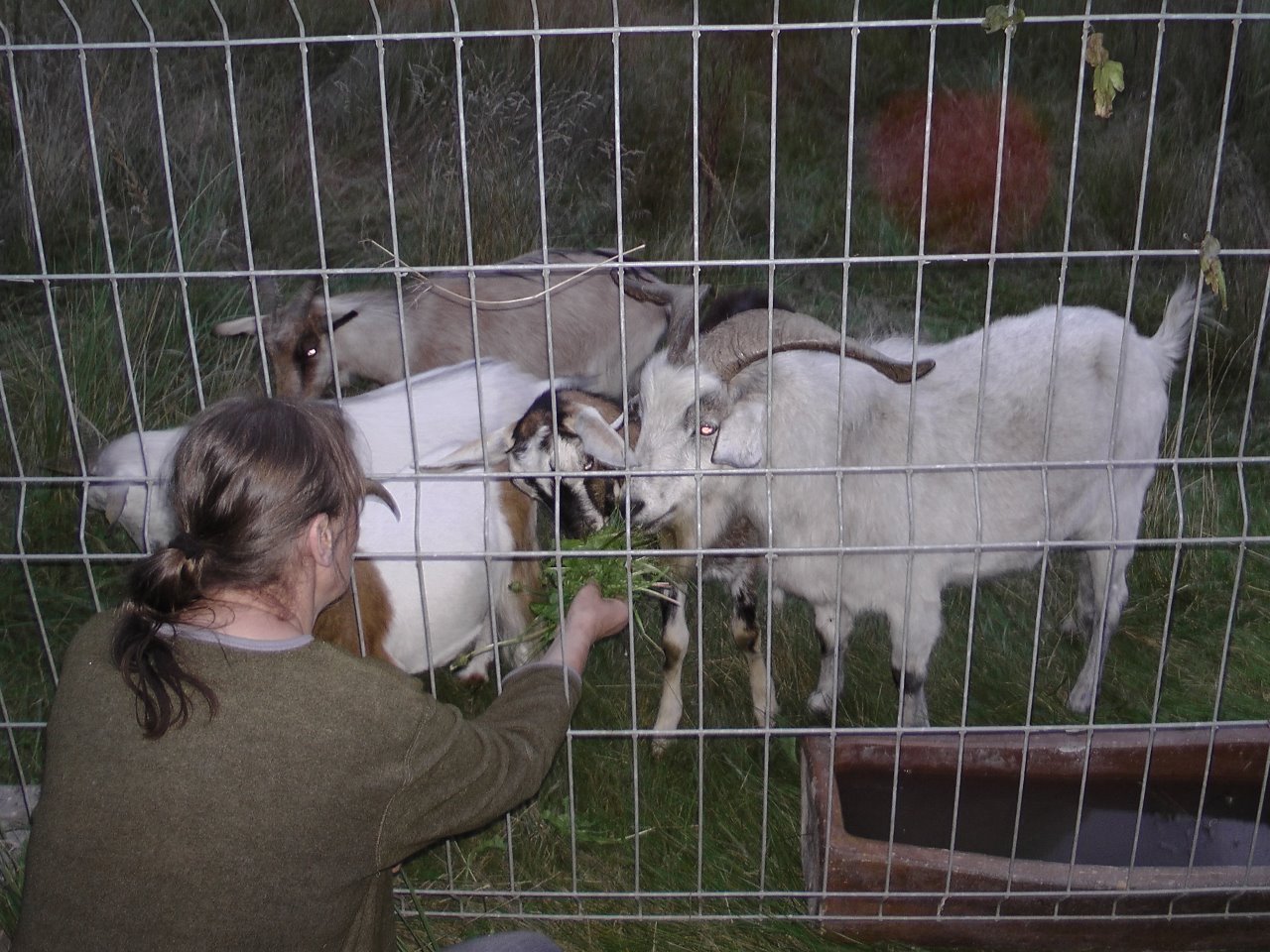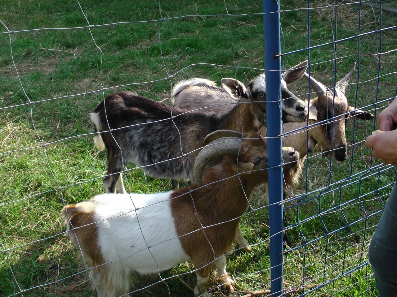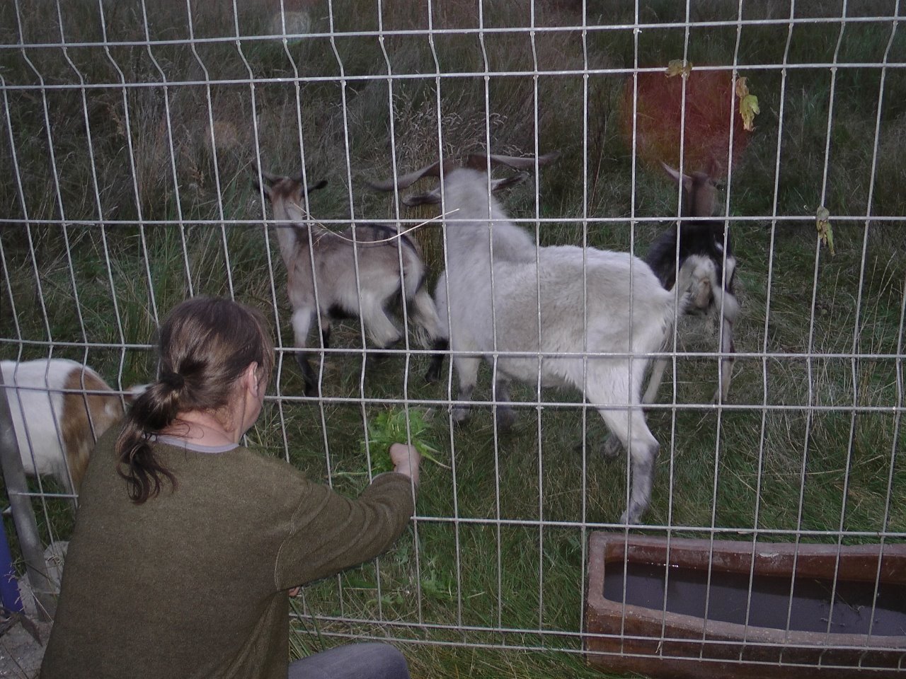 Unsere Ziegen erhielten vor einiger Zeit ein neues Gehege, damit sie eine schöne Grasfläche abernten können. Allerdings haben sie es nicht gedankt, sondern den Wildgatterzaun ausgehebelt und die jungen Bäumchen auf dem restlichen Gelände plattgemacht.