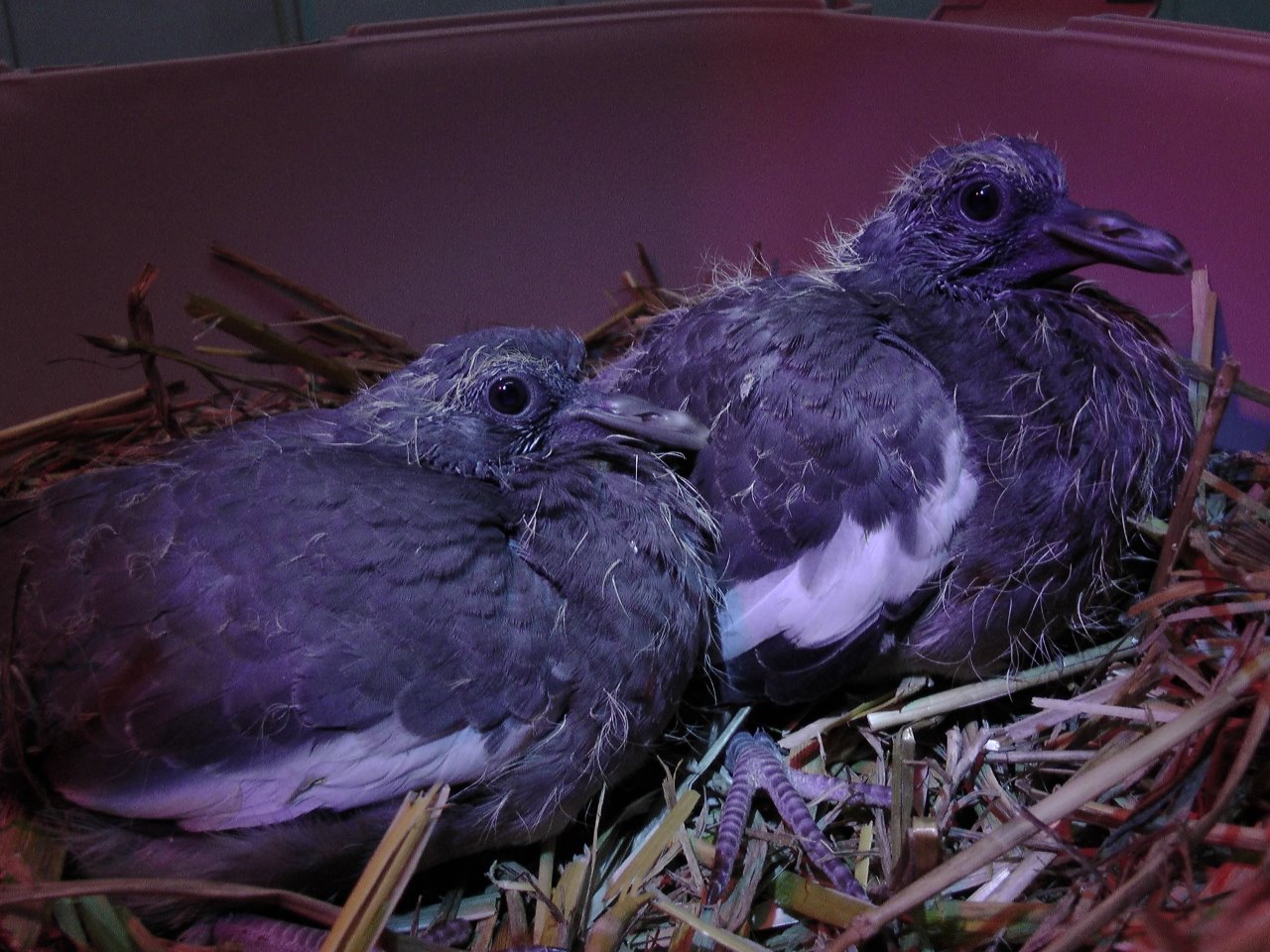 Die Fotos sind nicht so gut, weil wir nicht mit Blitz fotografieren wollten. Es werden bessere kommen, wenn die Tauben größer sind.