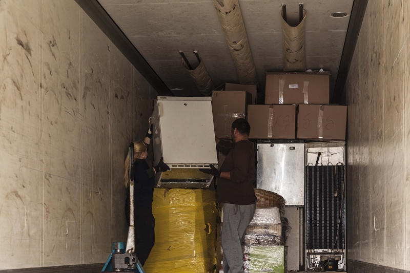 Auf dem LKW befinden sich 22 Tonnen an Fracht. Damit könnte man so manche Wohnung komplett übermannshoch zustellen.