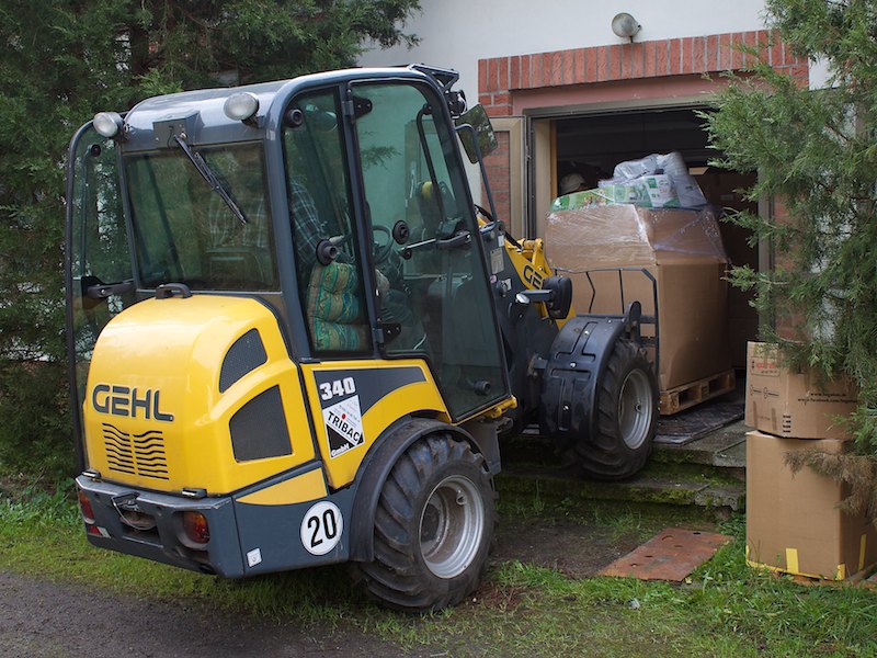 Nach ein paar Stunden anstrengender Verladearbeiten taten den Helfern die Knochen wieder tüchtig weh, denn einige Paletten mussten aufgelöst und neu verstaut werden, weil der LKW-Fahrer die Achsen anders beladen haben wollte.