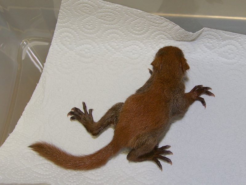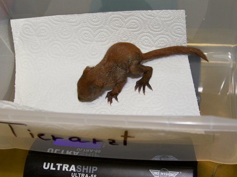 hugo 02Eine Beelitzer Tierfreundin brachte uns ein aus dem Nest gefallenes Eichhörnchen. Es ist noch so jung und winzig, dass es die Augen noch nicht offen hat.