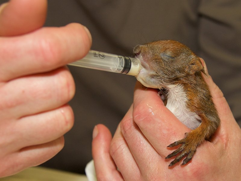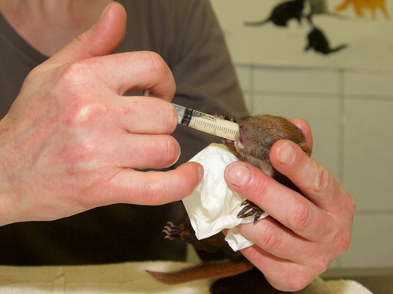 Sie hatte es bereits vorbildlich versorgt und damit sein Leben gerettet, obwohl das Eichhörnchenbaby sogar stark unterkühlt war.