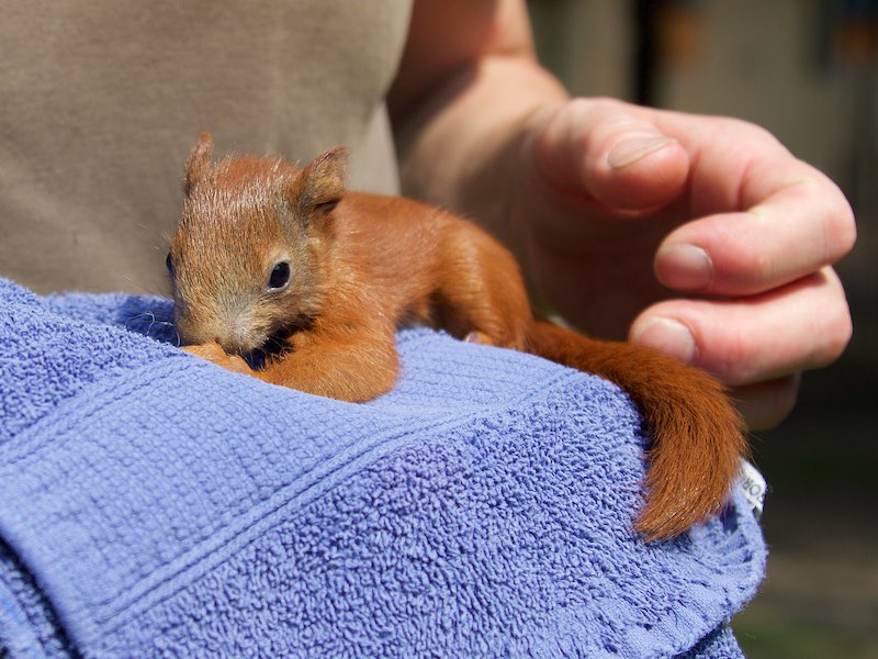 Verlassene Eichhörnchen müssen alle 2 Stunden sachgerecht gefüttert werden. Wir haben immer die entsprechende Ausstattung da, so dass man uns jederzeit anrufen kann, wenn man ein Eichhörnchen in Not findet (zu klein, unterkühlt, verletzt o.ä.).