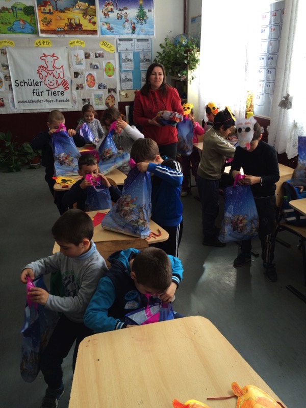 Zu Weihnachten dann spendeten unsere Tierfreunde jedem Kind eine Tüte mit einem Malheft, Süßigkeiten und einer Armbanduhr.