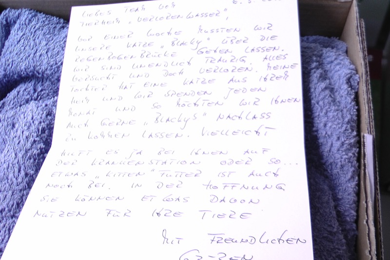 Manchmal kommen Pakete mit Geschenken für unsere Tiere, die uns nicht nur freudig stimmen, denn wir erfahren oft, dass ein geliebtes Tier verstorben ist und wir deshalb die Hinterlassenschaften bekommen.