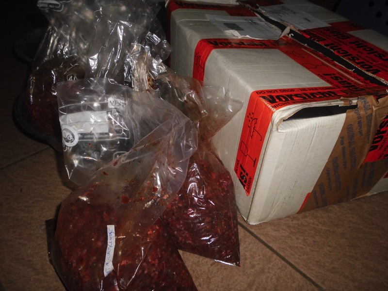 08Eine liebe Tierfreundin aus Westdeutschland schickt uns ab und zu ein Riesenpaket Frischfleisch. Es kommt immer ganz schnell und dadurch noch gut gefroren an - ist also absolut frisch.