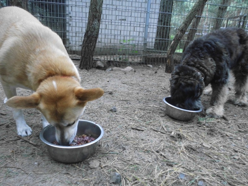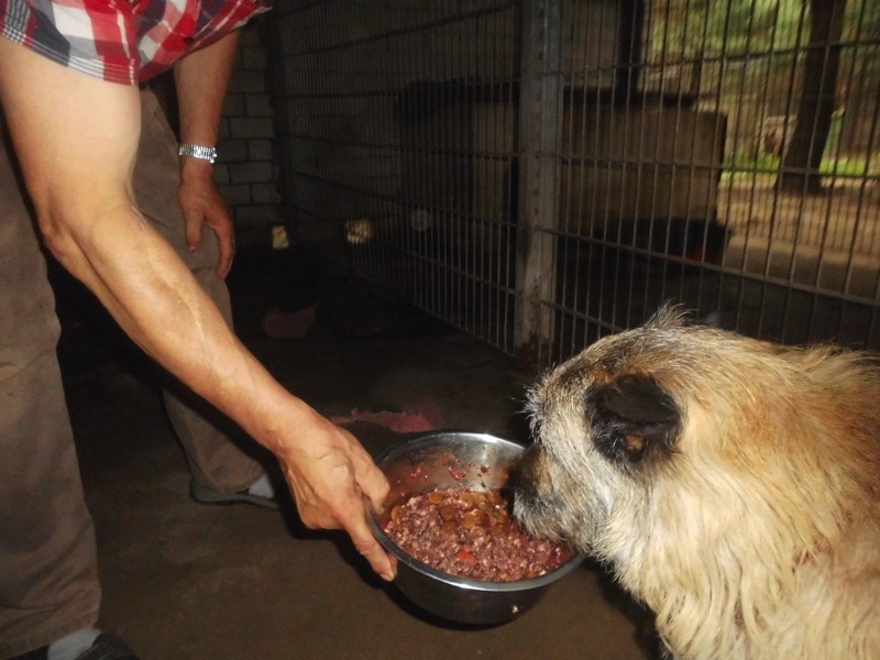 Bei 70 Hunden bekommt dann jeder ein Schmankerl oben auf das Trockenfutter und die älteren und kränklichen werden bevorzugt und erhalten eine ganze Schüssel.