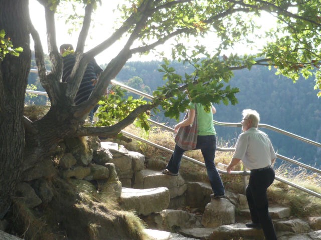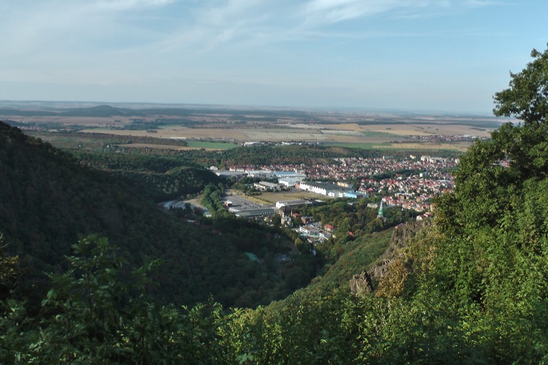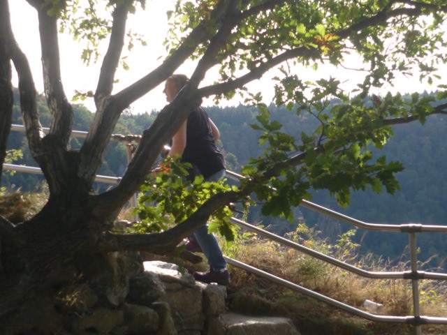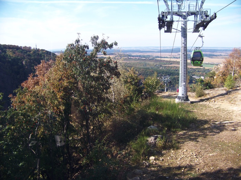 In Thale angekommen ging es zuerst mit der Seilbahn zum Hexentanzplatz hinauf. Die Landschaft um die Bode herum ist wirklich wunderschön - auch wenn nicht alle den Ausblick aus so großer Höhe völlig entspannt genießen konnten: die Kabinen der Schwebebahn haben nämlich nicht nur Glaswände, sondern z.T. auch Glasböden.