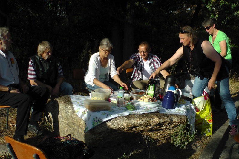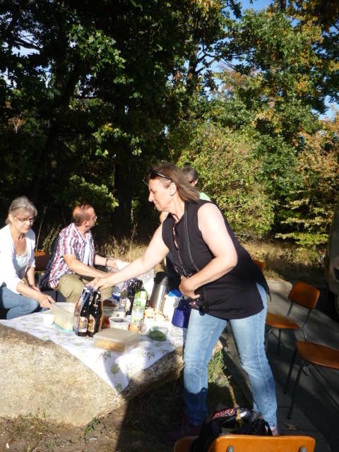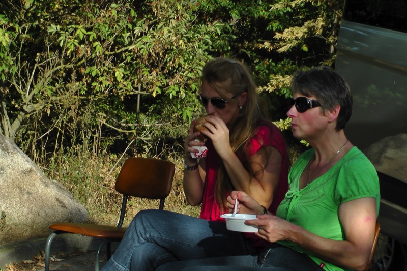 Danach gab es dann erst einmal einen kräftigen Happen und ein bißchen Zeit zum Relaxen. Jeder hatte etwas zum Picknick beigesteuert: Siegfried seinen beliebten Kartoffelsalat, Detlef die Bouletten dazu usw.