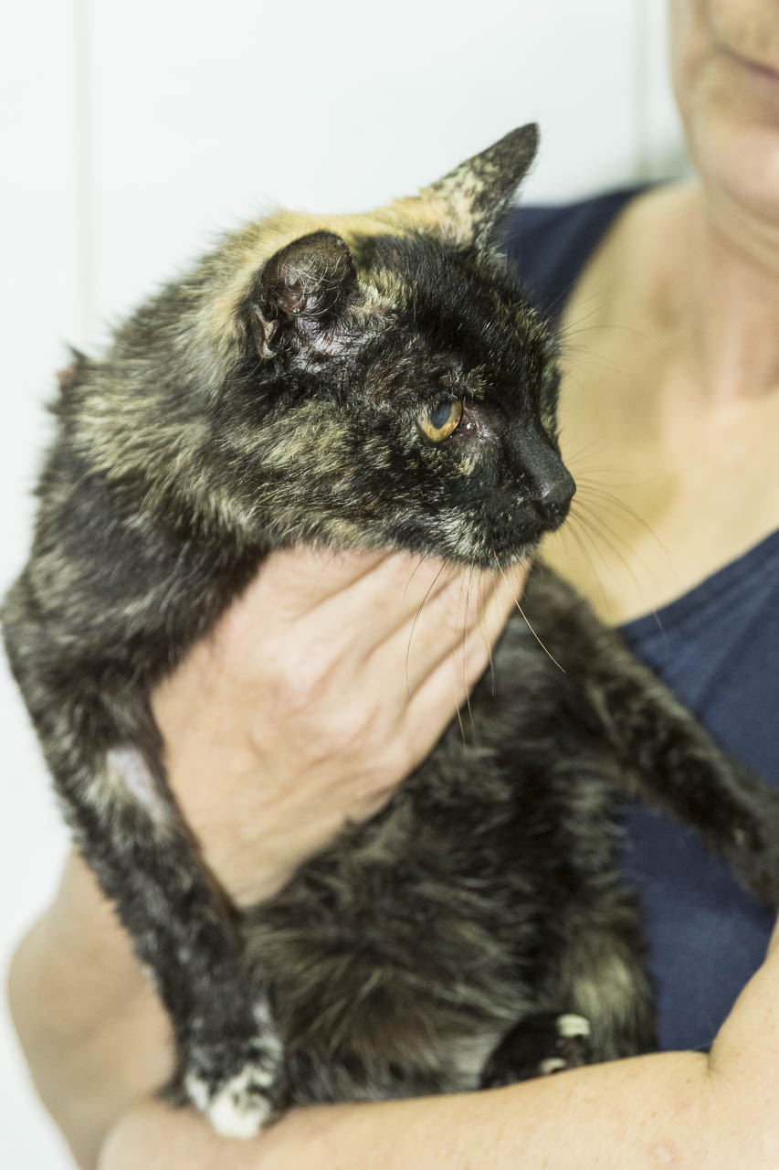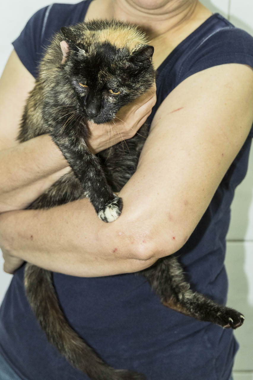 Sie war völlig abgemagert, wirklich klapperdürr. Laut unserer Tierärztin ist sie steinalt. Sie fürchtete schon, dass es auf's Einschläfern hinausläuft. Aber natürlich versuchen wir immer erst, ob wir das Tierchen wieder auf die Beine bekommen.