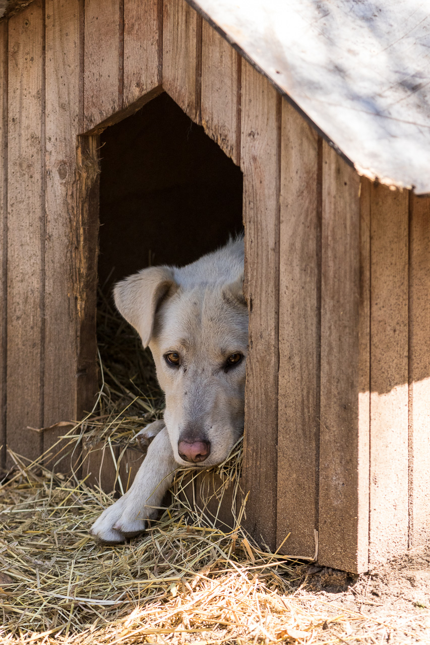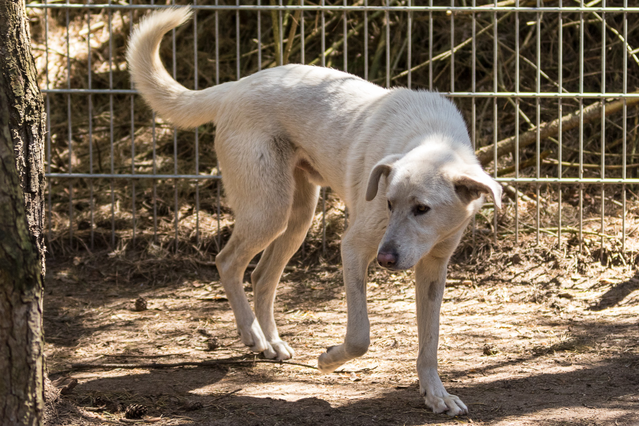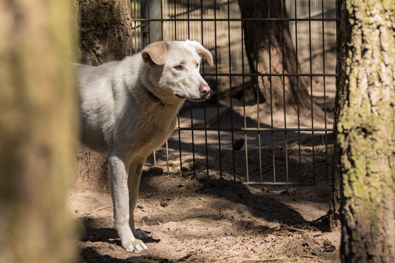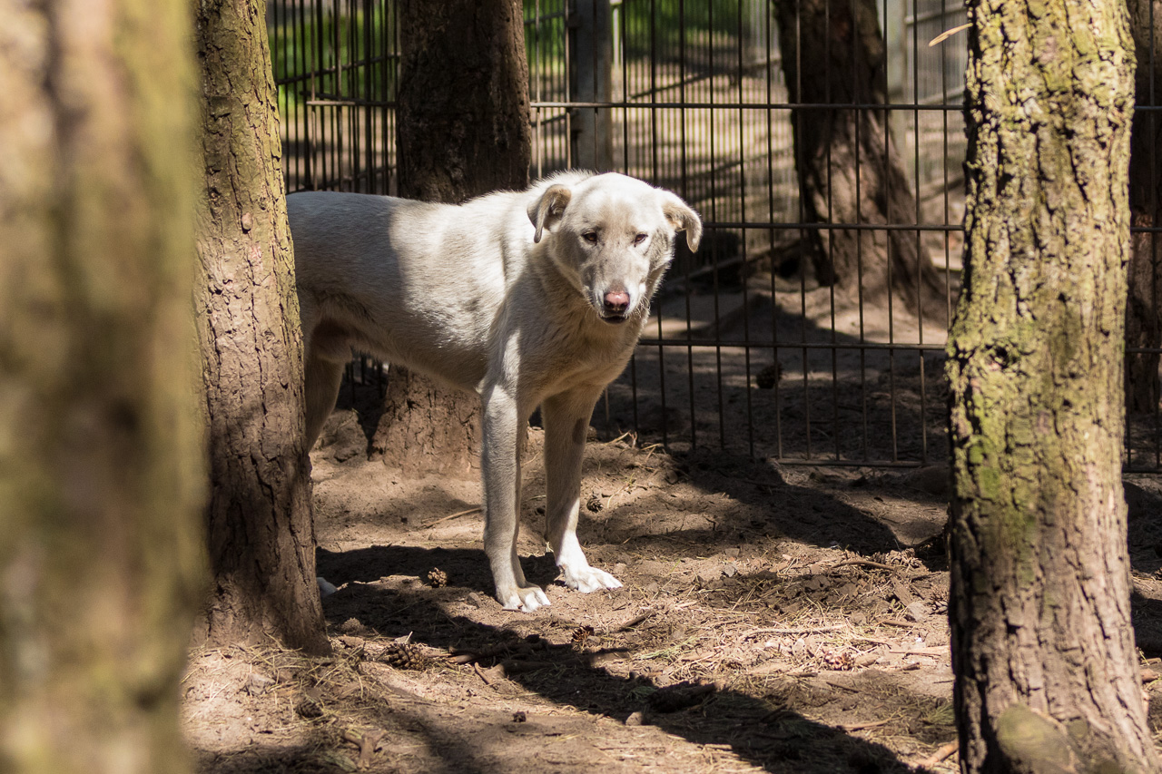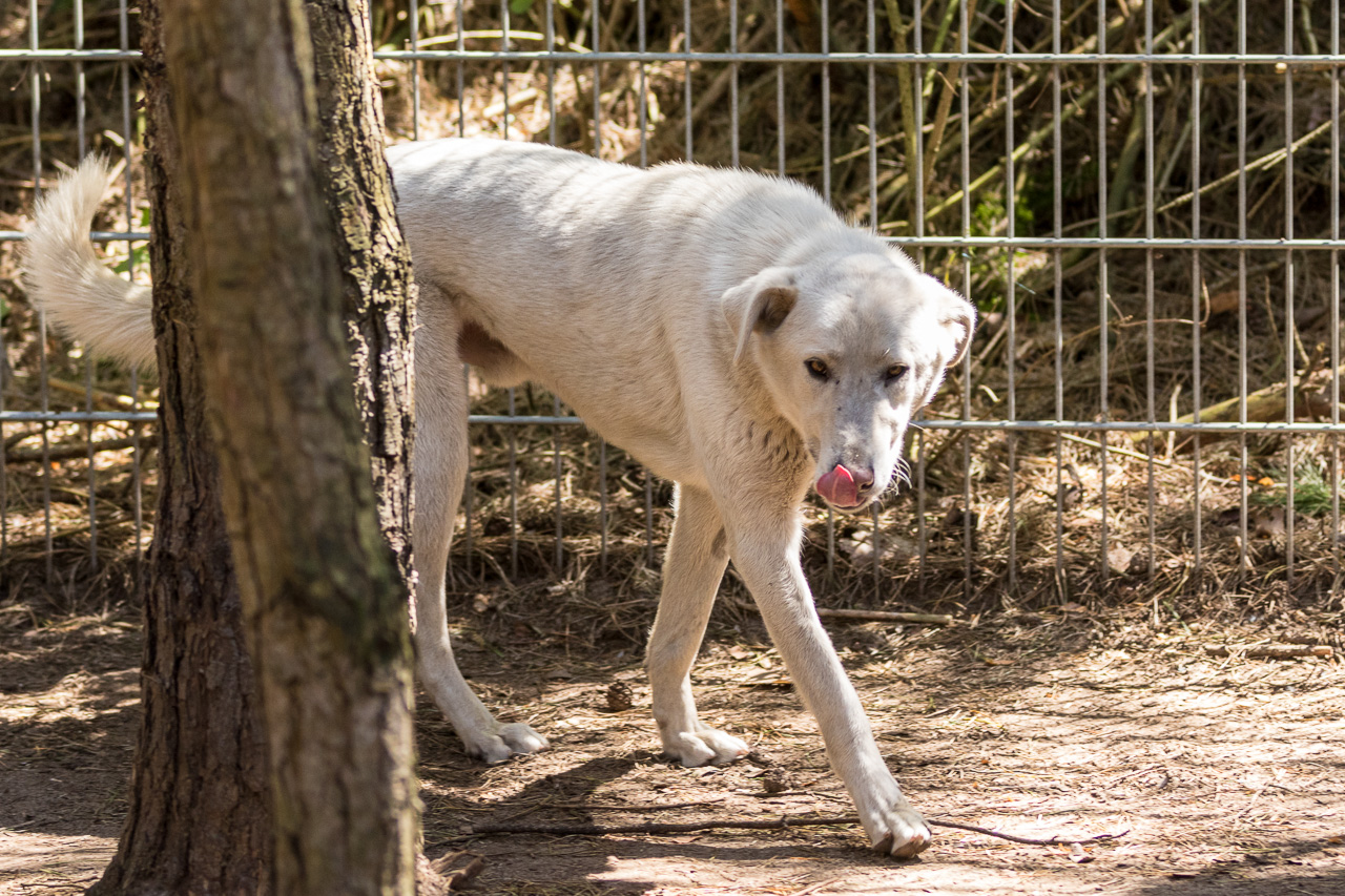 Wir wussten, dass es nicht einfach werden würde mit Gerry. Doch als er eintraf, zeigte er sich noch ängstlicher, als wir erwartet hatten. Er wurde panisch, wenn Menschen sich näherten. Wir ließen ihn mit Hündinnen gemeinsam leben in der Hoffnung, er schaut sich etwas ab. Und wir gaben ihm viel Zeit. Nach den ersten Wochen begannen wir vorsichtig, ihn daran zu gewöhnen aus der Hand gefüttert zu werden und die Nähe des Menschen zu ertragen. Doch wollte man ihn am Halsband anfassen und anleinen, biss er sofort alles durch und flüchtete.