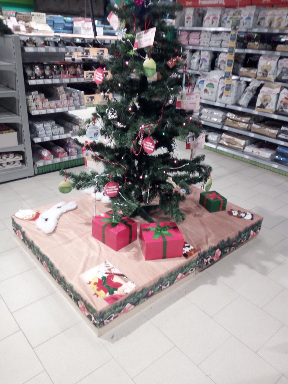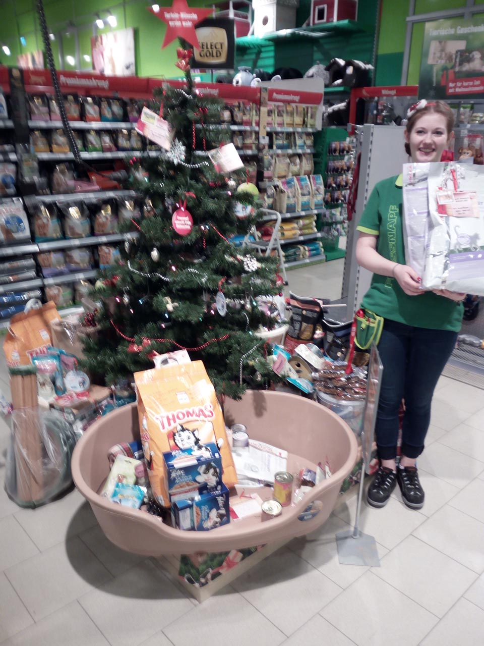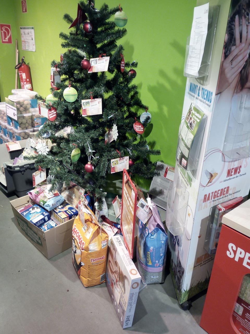 Die Bäume bleiben teilweise noch bis nach Weihnachten stehen, aber unser Tierheimleiter durfte in mehreren Berliner Filialen am 23.12. schon vorbeikommen und die bisher eingegangenen Spenden abholen.
