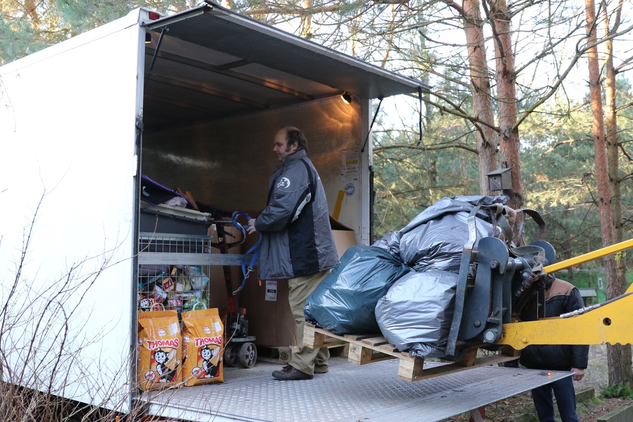 UND: Dann war da ja noch der LKW. Von Berliner Geschäften hatte unser Tierheimleiter ebenfalls reichlich Spenden abholen dürfen.