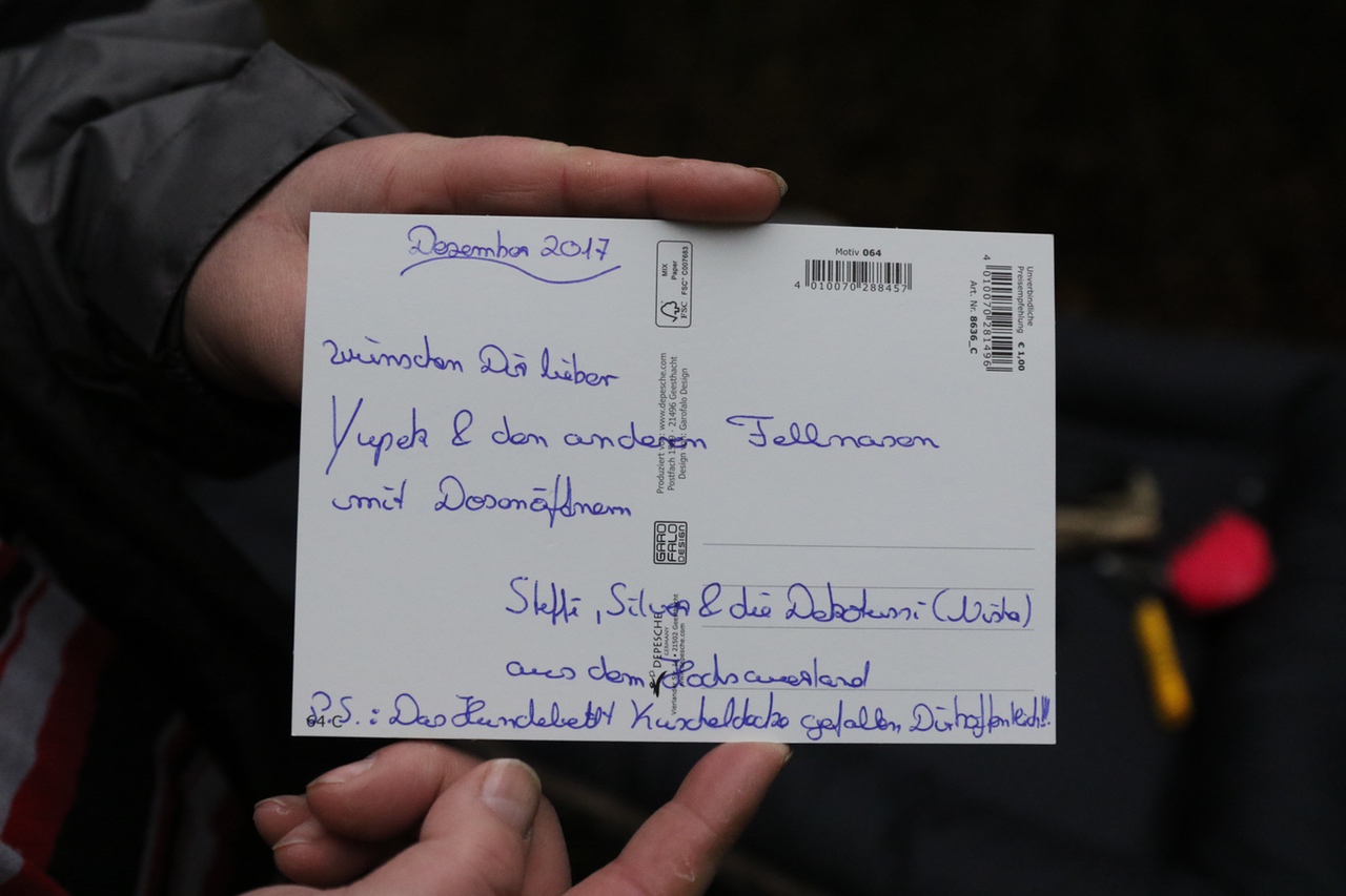 Zum Glück verlief der restliche Tag dann ausschließlich positiv. Alle Besucher kamen mit vollen Händen. Ehemalige schauten vorbei; die Mitarbeiter wurden reich beschenkt; alle Hunde erhielten zusätzliche Gassitouren; die gespendeten neuen LKW-Reifen erhielten ein Weihnachtsschleifchen für unser Dankfoto ...