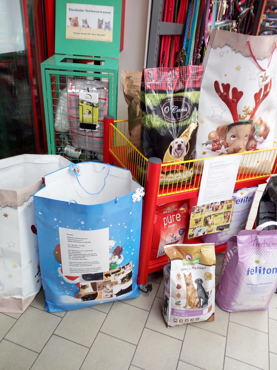 Das Futterhaus Teltow hielt ebenso wie andere Geschäfte noch reichlich Weihnachtsgeschenke für uns bereit, als unser Tierheimleiter in den letzten Tagen die Sammelcontainer leerte.