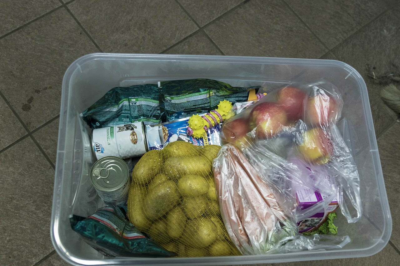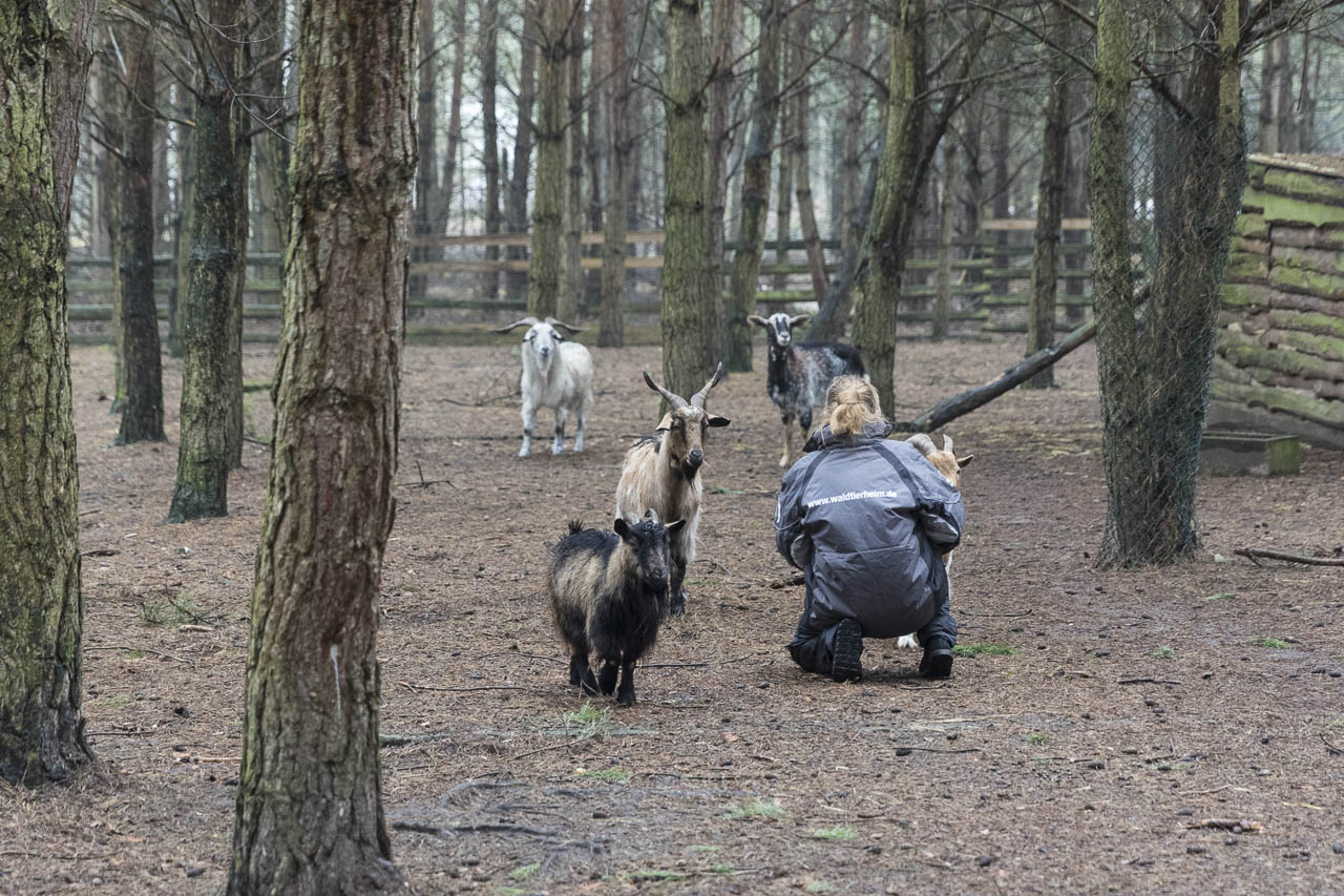 Na, und die gut gefüllte Box, die sie mitbrachte, war natürlich ebenso willkommen: Feinstes Leckerchen für Hunde und Katzen, aber auch Möhren, Äpfel und Kartoffeln für unsere Ziegen und Schafe.