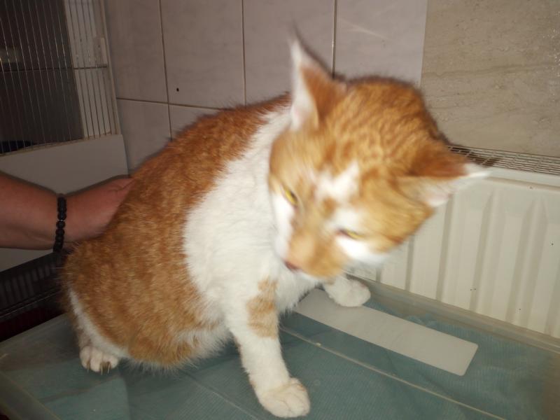 Wie wir von dem bisherigen Tierarzt des rot-weißen Hübschen erfuhren, hatte er vor zwei Jahren einen Bruch im Oberschenkel und erhielt eine Platte.
