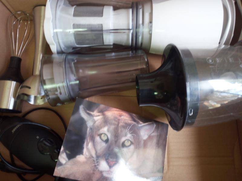 Eine Großladung Katzenklumpstreu - immer ein gesuchter Verbrauchsartikel bei uns. Geschirrspülmittel. Mehrere Stabmixer. Sie reichen nicht nur für das Katzenhaus, sondern wir können auch die Quarantäne und die Krankenstation gesondert bestücken, was für die Hygiene sehr gut ist.