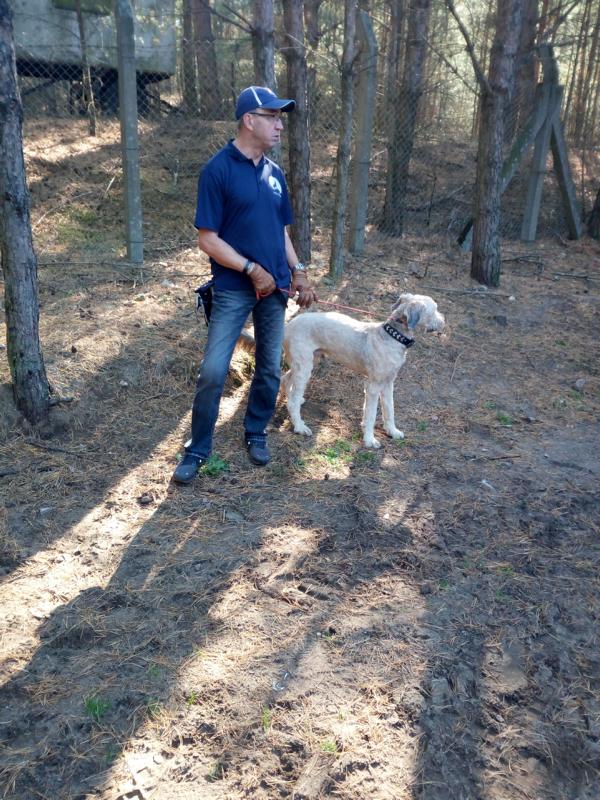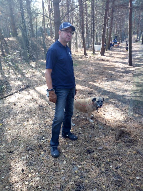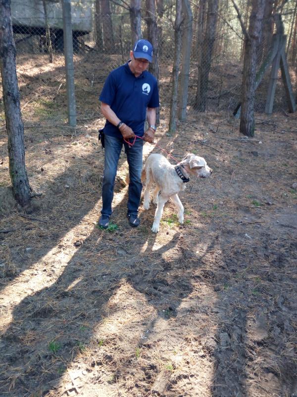 Mit einigen Hunden, die bei uns als verhaltensauffällig abgegeben worden waren, nahm er zunächst einmal Kontakt auf und setzte sich vor den Zwinger. Nach einem ausführlichen Gespräch von "Mann zu Mann", das durchaus schweigend verlaufen kann, war dann die erste Vertrauensbasis geschaffen und es ging entspannt auf Gassi.