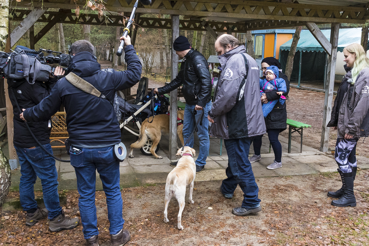 Hier schon mal einige Impressionen vom Dreh. Vor der Kamera sind Ehrenamtlerin Caro, Tierheimleiter Wolfgang Aland sowie eine Familie, die sich für Sunshine als Zweithund interessierte.