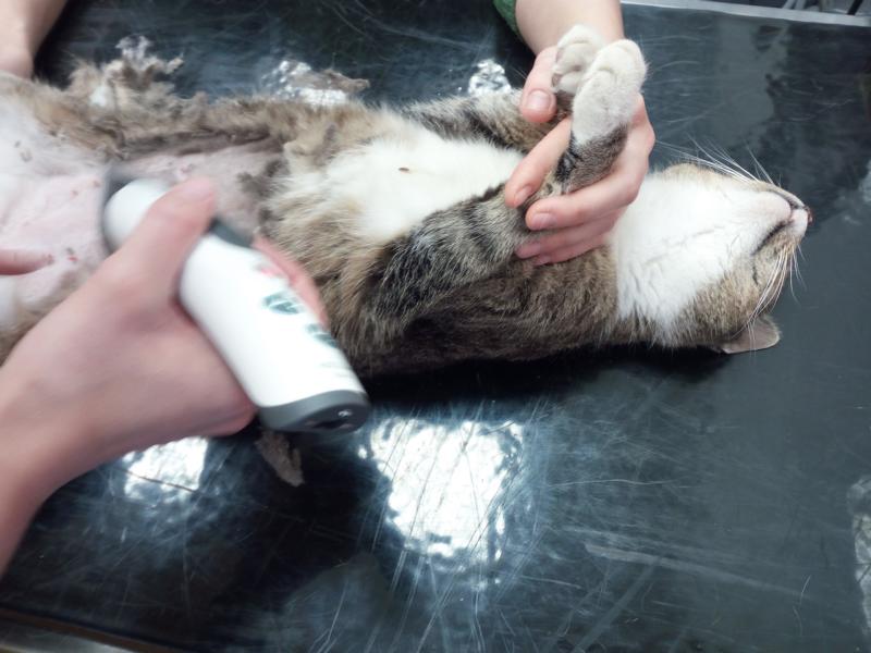 Alle Straßen-Kätzinnen wurden zuvor per Ultraschall untersucht. Etliche waren schon so weit tragend, dass die Ärzte nicht mehr kastrierten. Hier ziehen wir also die Jungen auf und die Mütter werden danach kastriert.
