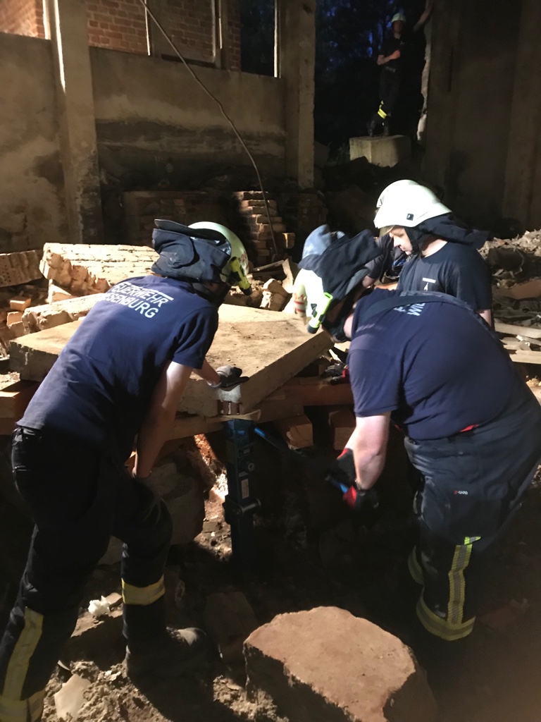 Alle Einsatztätigkeiten müssen natürlich ständig geübt werden, damit im Ernstfall alle Handgriffe sitzen. Die Anforderungen sind mannigfaltig: Gebäude absichern, Mauern durchbrechen, Einsturzgefährdungen sichern, Lasten heben, Abseilen von Menschen und Technik, Bäume fällen, ...