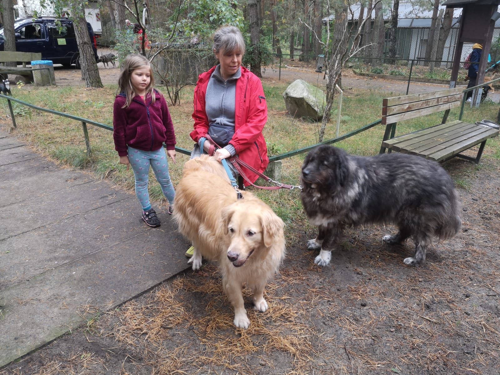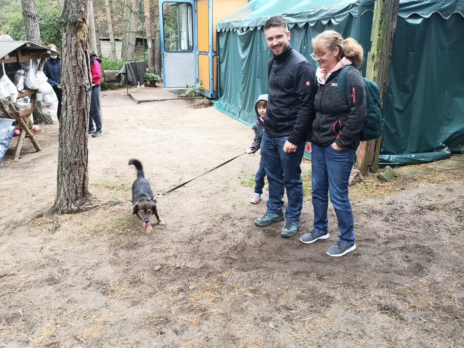 12.45 Uhr: die Gruppe kommt beim Treffpunkt für die Pause an; unser Tierheimleiter stellt Stühle und Bänke auf. Alle wollen sich schnell hinsetzen, damit die Sitze nicht vom Nieselregen nass werden.