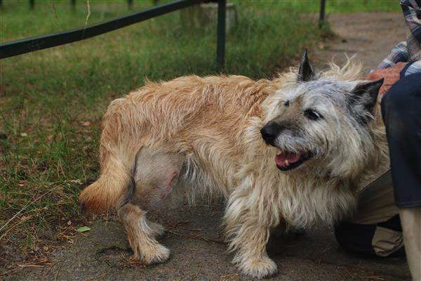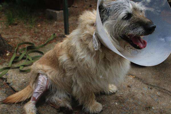 Rocky ließen wir schon vor einigen Wochen wegen eines Kreuzbandrisses operieren. Dem Chirurgen fiel auf, dass er auch am anderen Hinterbein eine alte Verletzung hatte.