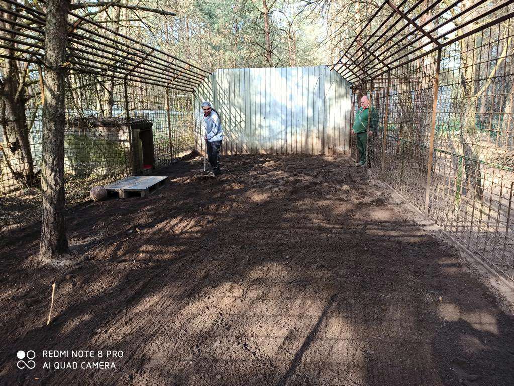 Andreas und Siggi schafften mehr als erwartet, so dass sie unserer Mitarbeiterin Simone sogar noch den Wunsch erfüllen konnten, die Sicherheitsausläufe zu fräsen. Diese waren von den Hunden ganz festgetrampelt und sind nun wieder angenehmer zum Buddeln und Toben.