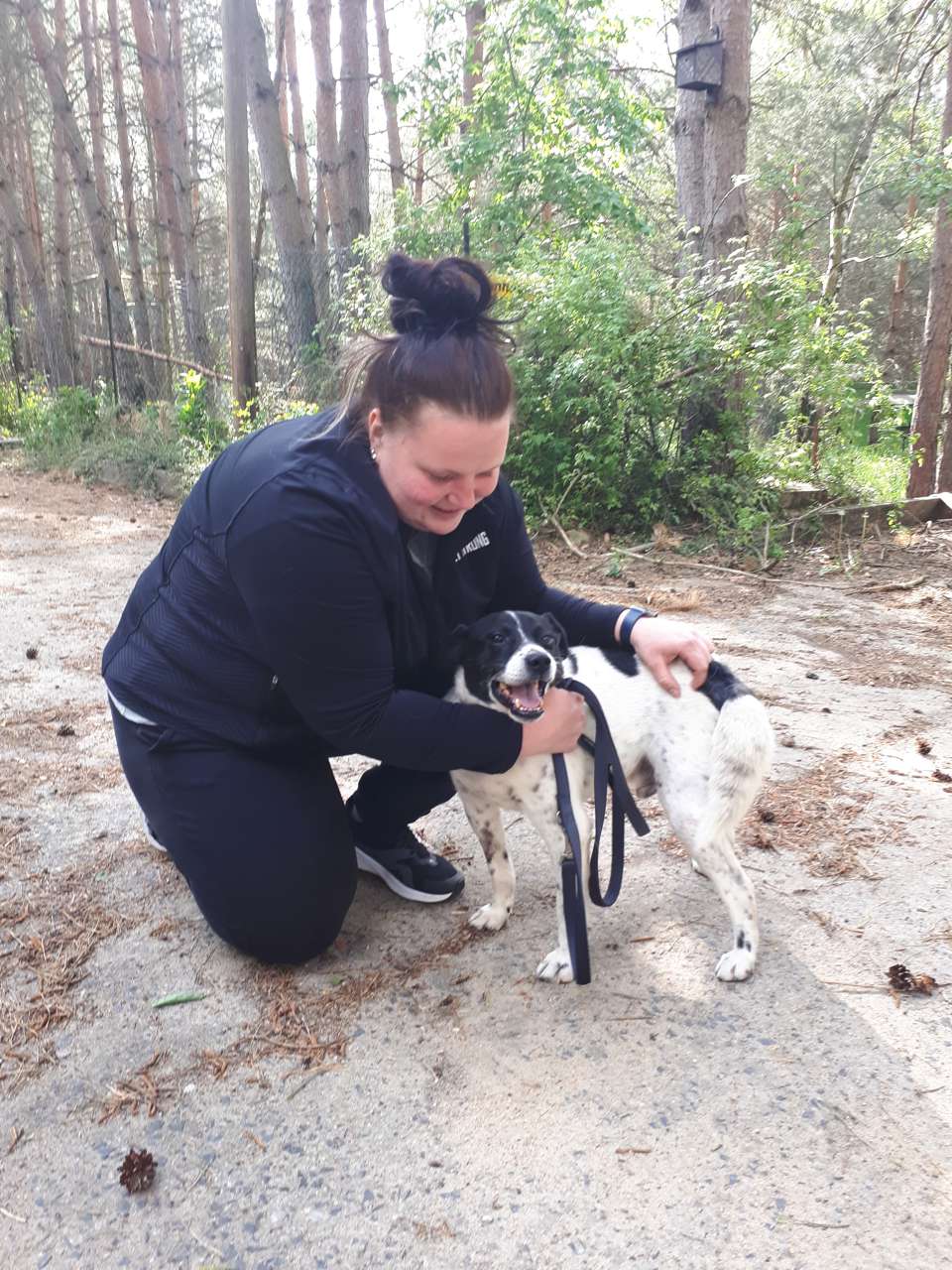 Blossek hat das Vertrauen in die Menschheit nicht verloren. Wie man auf den Fotos sieht, liebt er es zu schmusen und mit seinem Menschen zu spielen. Er ist laut Papieren 8 Jahre alt, aber wir schätzen ihn älter. Blossek wiegt 15 kg. Er fährt gern und entspannt Auto. In Berlin beim Tierarzt hatte er mit der Stadt und den Geräuschen kein Problem.