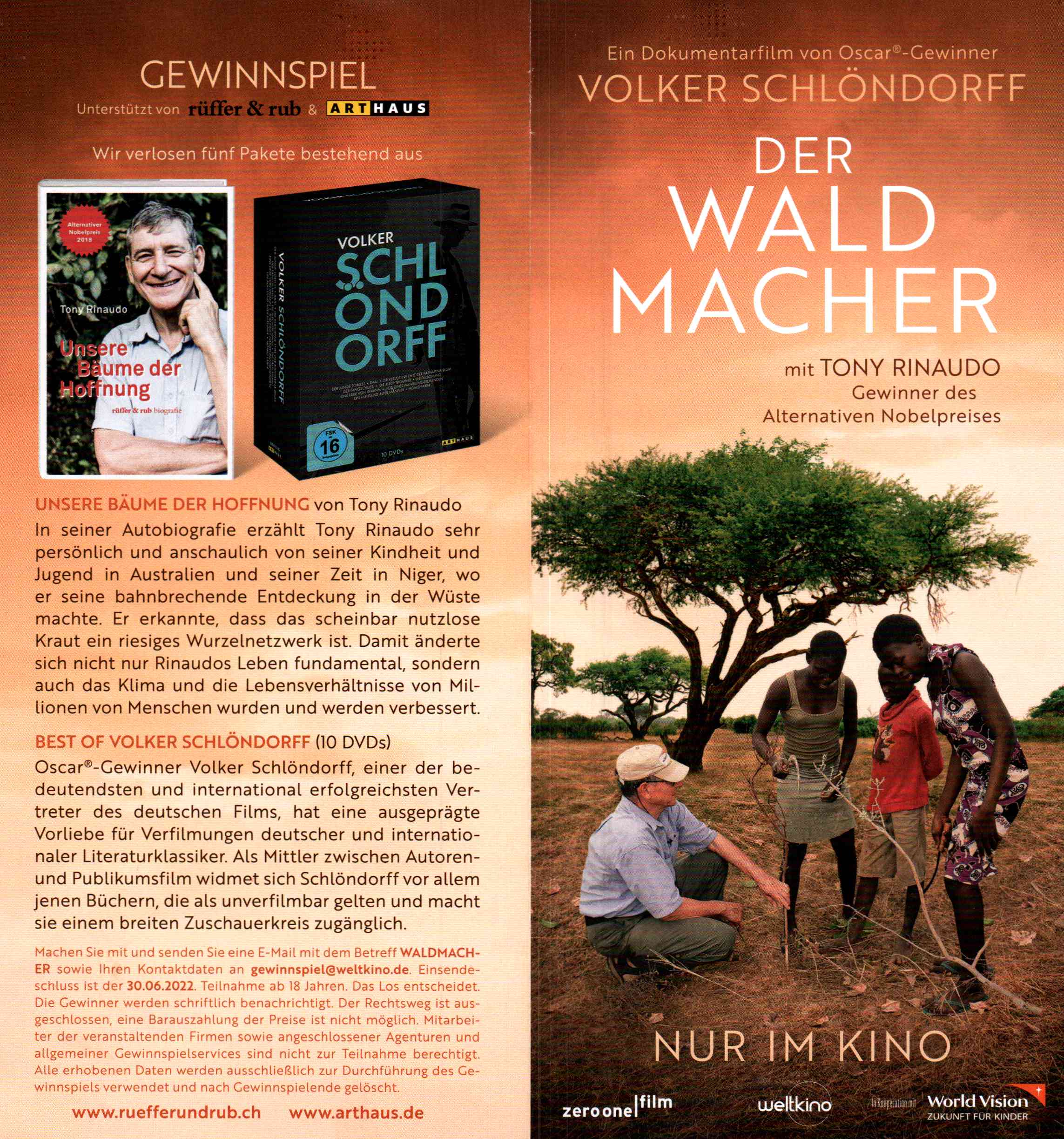 Der Film handelt von Tony Rinaudo, einem Australier, der in jungen Jahren nach Afrika kam und eine ganz spezielle Methode entwickelte, in unfruchtbaren Gebieten wieder Bäume und Sträucher wachsen zu lassen. Millionen von Bäumen und zig Tausende Hektar hat er in den letzten Jahrzehnten wiederbelebt.