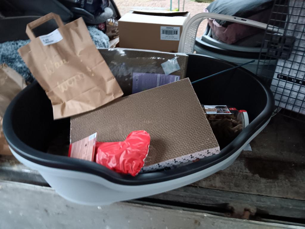 Tatsächlich kam die Dame und erfüllte alle unsere Wünsche: das teure Spezialfutter für Hunde und Katzen, Kittenfutter und noch Körbchen obendrauf und Liegekissen und Katzentoiletten und Kausnacks und Schlafschalen ... Über 600 € blätterte sie dafür hin.