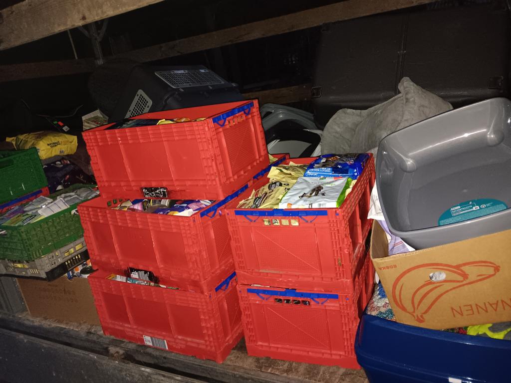 Da auch noch andere Tierfreunde gespendet hatten, war unser Transporter krachend voll und der große Anhänger ebenso.