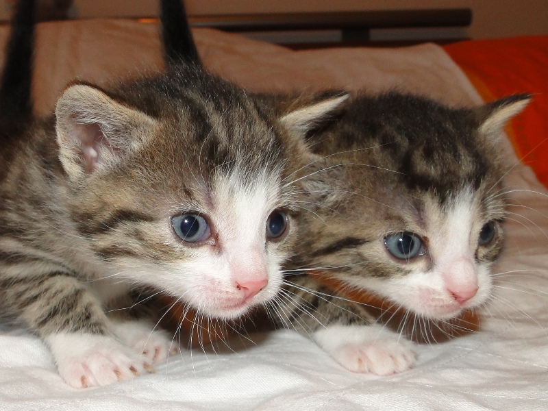 Und natürlich Fay als die Mama. Wer das Glück hat und dieser jungen Dame ein Zuhause geben darf, der hat einen Sechser im Lotto. Sie hat mittlererweile verstanden, wofür der Kratzbaum gedacht ist. Sie ist absolut stubenrein, springt nirgends drauf und hat bis jetzt keinerlei Unsinn im Kopf, was Katzen sonst so an sich haben. Was eigentlich auch schade ist, denn gewisser Unsinn bringt halt meist auch etwas Spannung mit sich. Nicht umsonst sagt man halt oft, dass Katzen ihren eigenen Kopf haben. Gut, ok, den hat sie auch, wenn es ums Kuscheln geht, denn das könnte sie stundenlang. Und wenn morgens bei mir der Wecker klingelt, dann stelle ich ihn meist so ein, dass er noch ein paar Mal klingelt. Das Klingeln ist allerdings der Startschuss für Fay, jetzt schmusen zu wollen. Aber immerhin wartet sie, bis der Wecker klingelt und tobt nicht Nachts durch die Gegend wie meine eigenen Katzen. Sehr sympathisch, muss ich ja zugeben. So, und nun lasse ich mal Bilder sprechen. Ach ja, da fällt mir ein: heute habe ich zum ersten Mal probiert, ob die Kleinen auch schon selbst aus dem Schüsselchen trinken, denn ihre Zähne sind draußen und traktieren die Mama ganz schön. Die ersten Versuche sind allerdings gescheitert. Ein Katerchen fand es zwar lecker, hat aber eher versucht, den Rand der Schüssel zu essen anstatt die Milch. Naja, ist ja noch kein Meister vom Himmel gefallen und mit ein bißchen Übung klappt das auch. Sie haben ja noch Zeit.