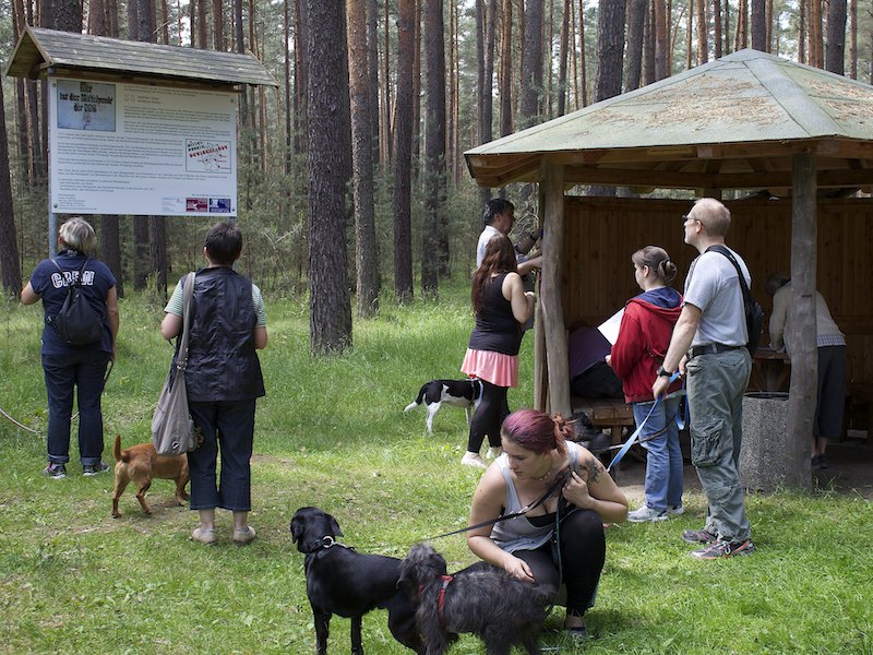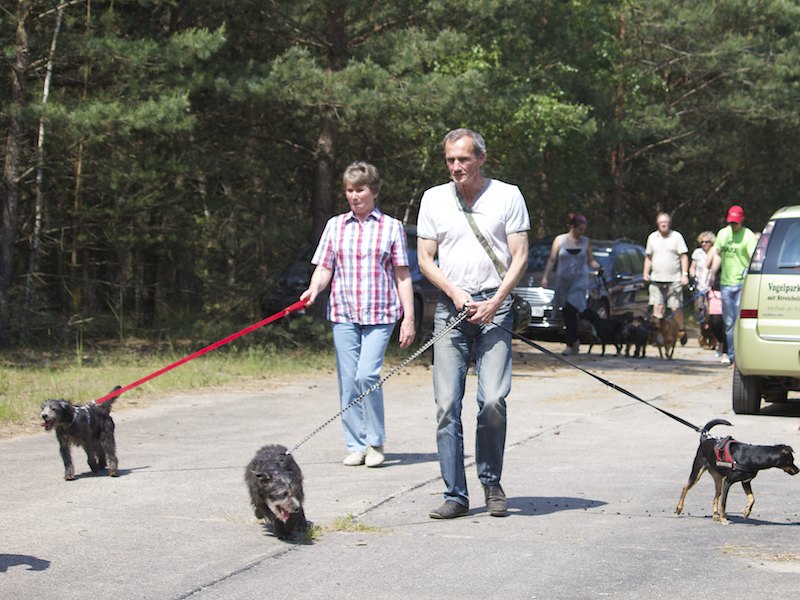 Der Zuspruch war groß: ehemalige Bewohner mit ihren neuen Familien; unbekannte Besucher, die ihren Hund mitbrachten und unsere Region kennenlernen wollten; und natürlich Gassigeher, die einen unserer Hunde mit zur Tour nahmen. Wir hatten nicht mit so viel Interesse gerechnet: so gingen uns die Leinen und die Hunde aus. Aber solche Probleme hat man gern.