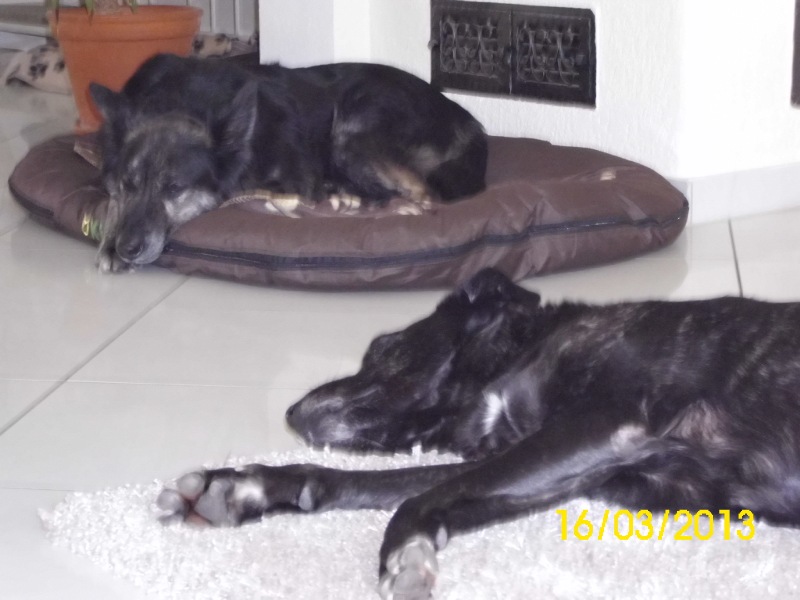 Hunde eine Kaustange. Max & Tobi haben sich ihr Bettchen ausgesucht und erst einmal ausgeruht.