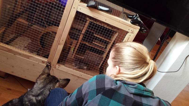 Nach einer völlig entspannten Autofahrt ist Siwka (So steht der Name im polnischen Impfpass, laut einer polnischen Kollegin bedeutet das "von Grau" :) ) in ihrem neuen zu Hause angekommen... Mit Ratten hat sie keine Problem - im Gegenteil - sie scheinen interessante Beobachtungsobjekte zu sein :
